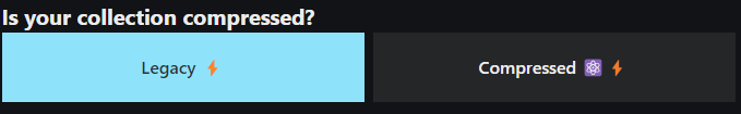 If your collection contains cNFTs (compressed NFTs), select Compressed. If not, then select Legacy.
